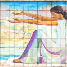 En el Museo del Teatro Romano, descubrimos su obra mural, que alberga una selección de bocetos originales realizados con acuarelas o témperas sobre papel, como es el caso del boceto para mural de cerámica en el Parque Torres, o el boceto a mitad de escala del mural de la antigua Casa de Cultura, unos murales desaparecidos en la actualidad. Destaca como pieza singular un mural cerámico original, 'Pescadores de Santa Lucía', de 2,5 metros de altura. Y comprobaremos en algunas fotografías la variedad de sus composiciones, desde lo figurativo, como el mural de Santiago en el Puerto de Santa Lucía, algo más expresionista en la cadena de montaje del Grupo Huertas Automoción, hasta lo más abstracto, como en los murales de la Asamblea Regional o de la Fábrica de Licor 43.