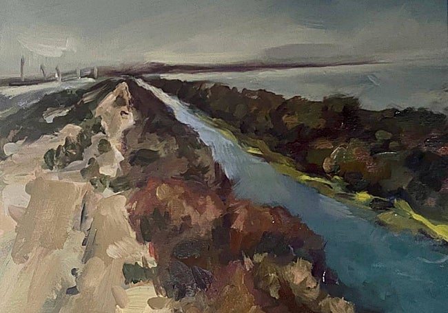 ¿Dónde le ha pillado al artista todo este trabajo? «Entre el campo [en un oasis perdido en la serranía de Mazarrón] y las salinas de Guardamar. He estado ahí pintando prácticamente todo este tiempo. Es un escenario real. Esos cuadros tienen 15 días, un mes como mucho, y el que va en portada en Ababol es un autorretrato, porque me acordé de esos versos en que dice Alberti que su madre le ha guardado el traje y no puede navegar. Te quedas muchas veces con las ganas de navegar mirando las gaviotas, es la pura verdad», admite.