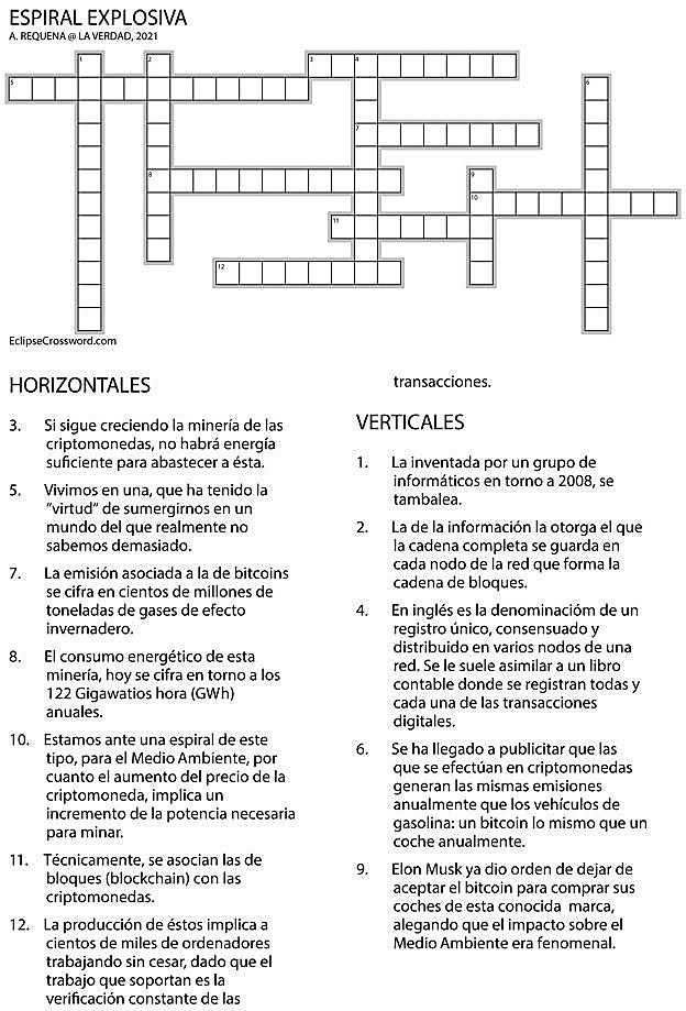 Estamos ante una espiral explosiva para el medio ambiente, por cuanto el aumento del precio de la criptomoneda implica un incremento de la potencia necesaria para minar, lo cual repercute en un aumento del consumo energético, con lo que, finalmente, se incrementan las emisiones del dióxido de carbono.