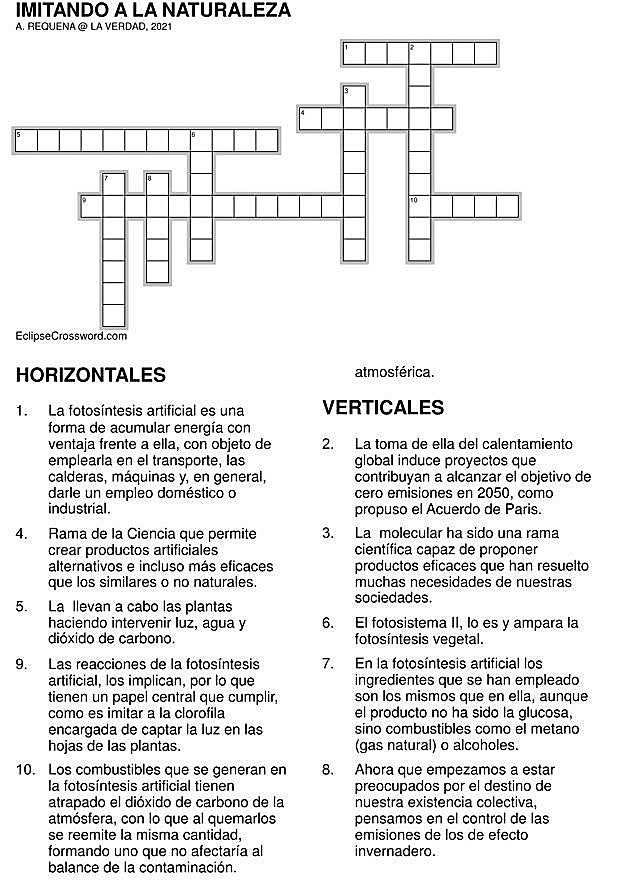 Hay varias iniciativas europeas que abordan esta línea de investigación, entre las cuales cuenta con iniciativas de origen español, CSIC, País Vasco y Cataluña, con pretensión de conseguir combustibles gaseosos o líquidos a partir de la luz solar, agua y el dióxido de carbono. Aquí las leyes también son operativas y la eficacia condiciona las alternativas. Todavía no disponemos de la solución capaz de satisfacer las exigencias. La Ciencia y la Tecnología tienen recorrido que cubrir. Imitar a la Naturaleza siempre ha dado resultados. Ha tenido más tiempo que nosotros para resolver muchos problemas. Nos lo muestra generosamente, siempre que queramos verlo.