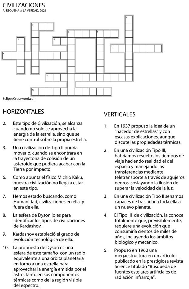 No han faltado propuestas en orden al manejo de la energía a gran escala, como se introduce en esta concepción de civilizaciones. Una de ellas, la de la ciencia ficción de 1937 de Olaf Stapledon, incluyendo la idea de un 'hacedor de estrellas' y con escasas explicaciones –aunque discute las propiedades térmicas–, es retomada por Dyson, que propuso en 1960 una megaestructura en un artículo publicado en la prestigiosa revista 'Science' titulado 'Búsqueda de fuentes estelares artificiales de radiación infrarroja'. Propone una esfera de tamaño astronómico con un radio equivalente a una órbita planetaria en torno a una estrella para aprovechar la energía emitida por el astro, tanto en sus componentes térmicas como de la región visible del espectro. La clave es que sirvió de acicate para buscar en la observación astronómica tales superestructuras que permitirían detectar la existencia de civilizaciones extraterrestres. La esfera de Dyson es sustancial para identificar los tipos de civilizaciones de Kardashov. Seguimos en espera.
