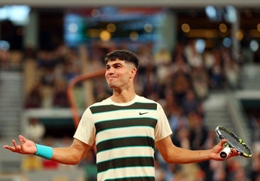 La entrevista a pie de pista con Mats Wilander concluye, pero Carlos Alcaraz no quiere abandonar la Philippe-Chatrier sin hacer algo antes. Agarra ... el micro y suelta un «popopopopopo pololó» que resuena en todo el estadio y que acompañan los miles de espectadores con un «oleeeeé». Sonríe el murciano. Tenía ganas de hacer eso alguna vez en la pista central: «Lo tenía pensado desde el año pasado. Era el momento de atreverme y hacerlo. La última vez que lo hice fue cuando vine a Roland Garros de niño, pero nadie me siguió en la grada. Quería hacerlo y ver cómo reaccionaba la gente», reconoce el de El Palmar en rueda de prensa. Se siente como en casa en París, donde ha ganado 18 de sus últimos 20 partidos tras superar este miércoles en segunda ronda al húngaro Marozsán (6-1, 4-6, 6-1 y 6-2). En la siguiente parada espera ya el bosnio Dzumhur.