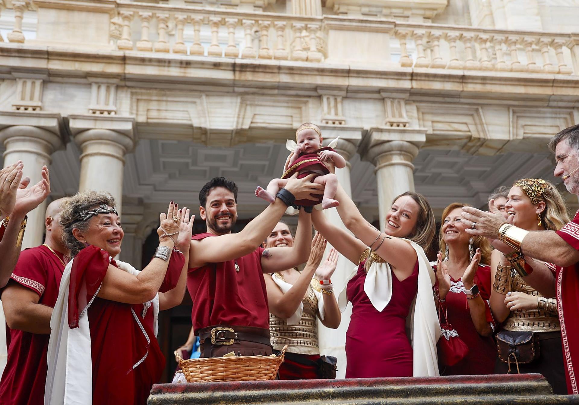 Por la mañana, la lluvia no impidió la celebración del Nasciturus, en el que participaron 64 niños y niñas, asegurando así que el relevo generación de las fiestas de Carthagineses y Romanos está más que garantizado. El acto comenzó con el baile de las musas, que dio paso a la conversación entre Apolo, Jano y Juno, que describieron el evento que tuvo lugar a continuación y que simboliza la presentación al pueblo de Roma de los niños que se han unido este año, «a través de un contrato que se signa con la mano».