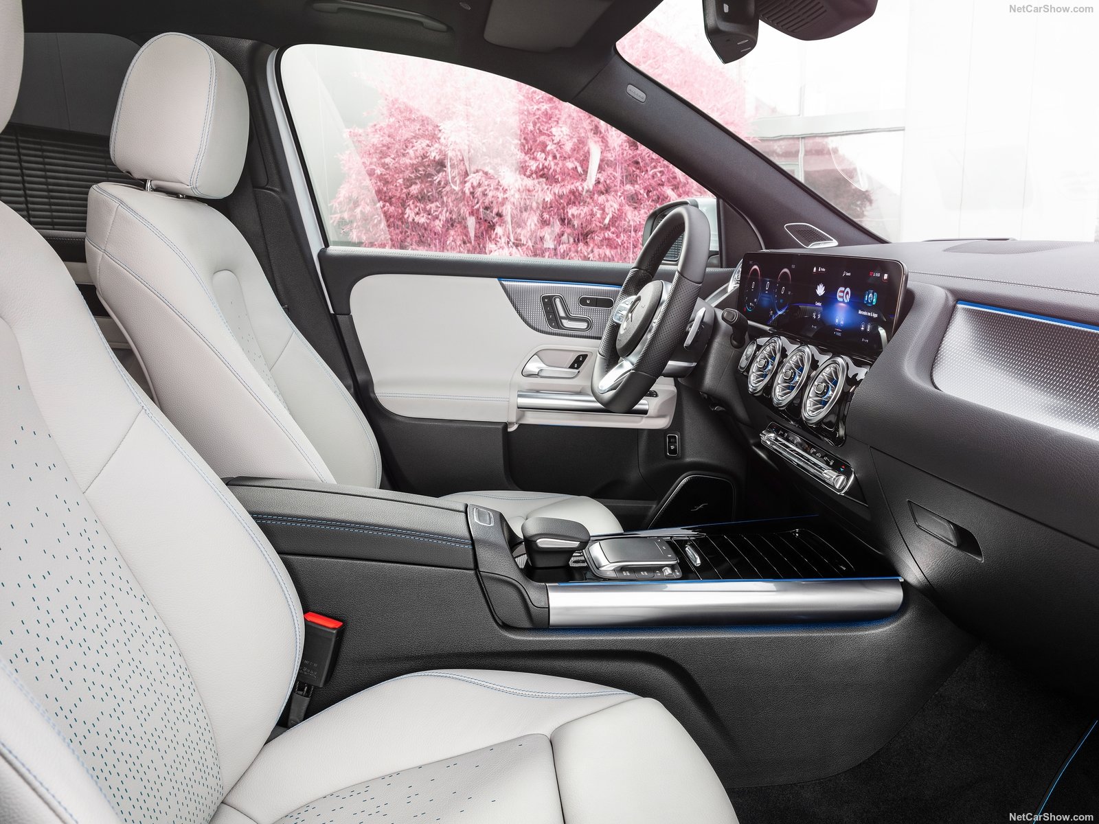 En su exterior, el nuevo EQA de Mercedes-EQ consta de un diseño electrizante desde el primer momento. Resalta su lujo avanzado en formato deportivo que permiten identificarlo de forma inequívoca. En este sentido, destaca la calandra del radiador Black-panel típica de la marca, con estrella central, y las bandas luminosas en el frontal y en la zaga, además de los elementos azules en los faros led. La banda luminosa de led entre las luces traseras de diodos asume este sugestivo rasgo distintivo del frontal, unificando el aspecto exterior y reforzando la impresión de anchura de la carrocería. Otro elemento que reseña su carácter deportivo son los sutiles resaltes longitudinales sobre el capó.