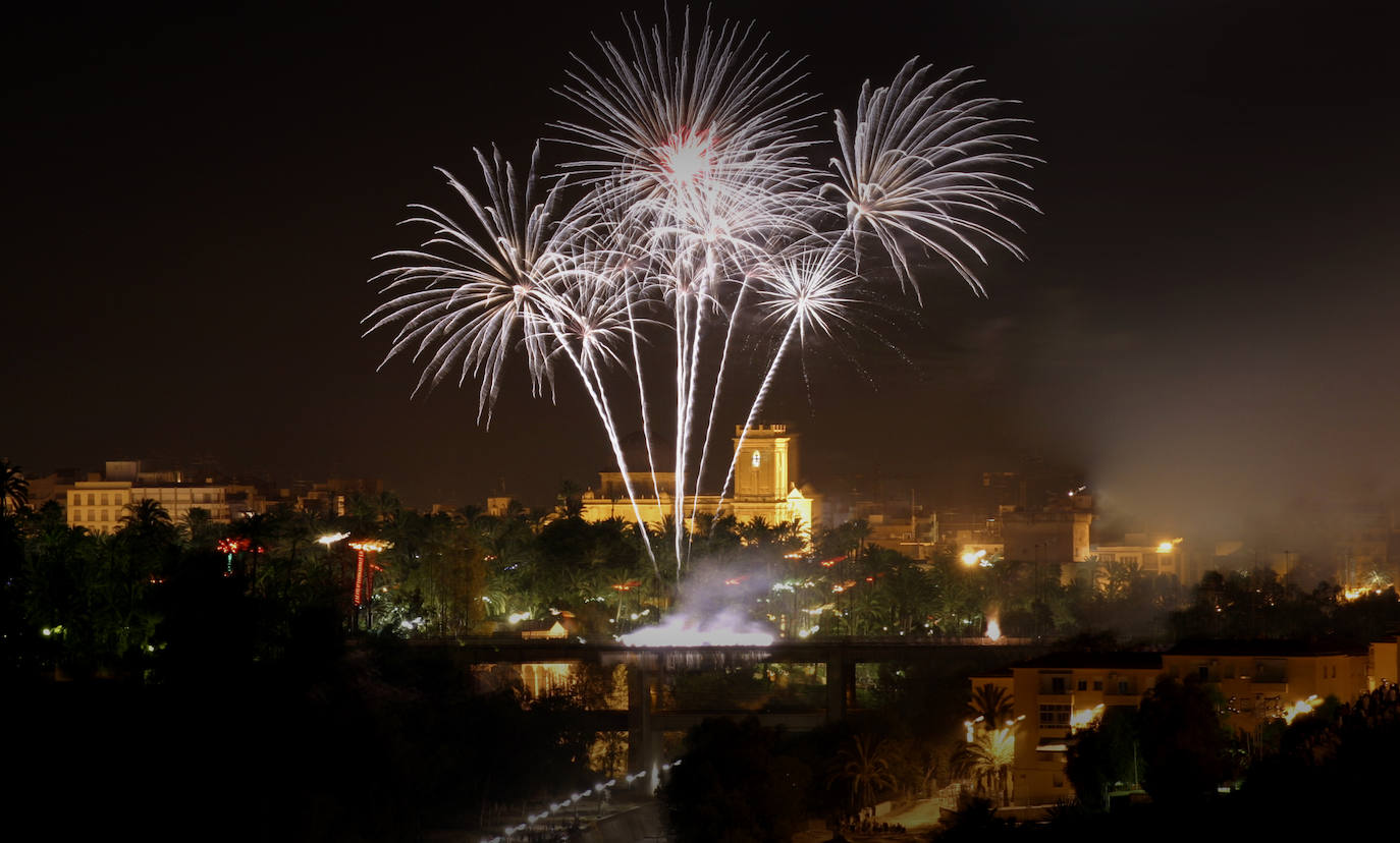 La tradición también marca dos de las noches más singulares de las fiestas. El 13 de agosto se celebra la Nit de l’Albà, declarada Fiesta de Interés Turístico Nacional, en la que la pólvora se hace protagonista indiscutible en una explosión de luz, color y sonido. Minutos antes de la media noche, el magistral espectáculo pirotécnico se detiene, las luces de la ciudad se apagan y culmina con el lanzamiento de la Palmera de la Virgen, de intensa luz blanca, que ilumina el cielo ilicitano.