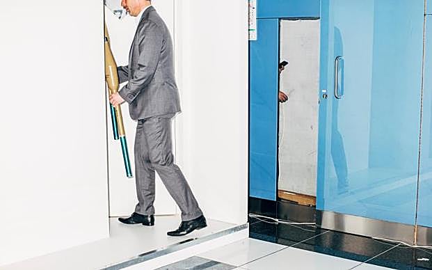 Un hombre coloca un par de granadas en un armario durante una feria de armas en Rusia