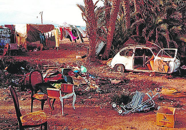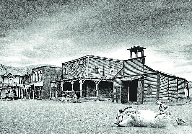 «Estas imágenes de Cristina García Rodero establecen una relación entre la llegada del 'spaghetti western' a Almería, en los años sesenta, y los problemas de mercado y distribución que enfrentaba esta industria cinematográfica. Los altos costos y los riesgos asociados hicieron que estas producciones recalaran en el desierto de Tabernas, el cual, tras su abandono, se convirtió en ruinas que posteriormente fueron transformadas en atracciones turísticas.