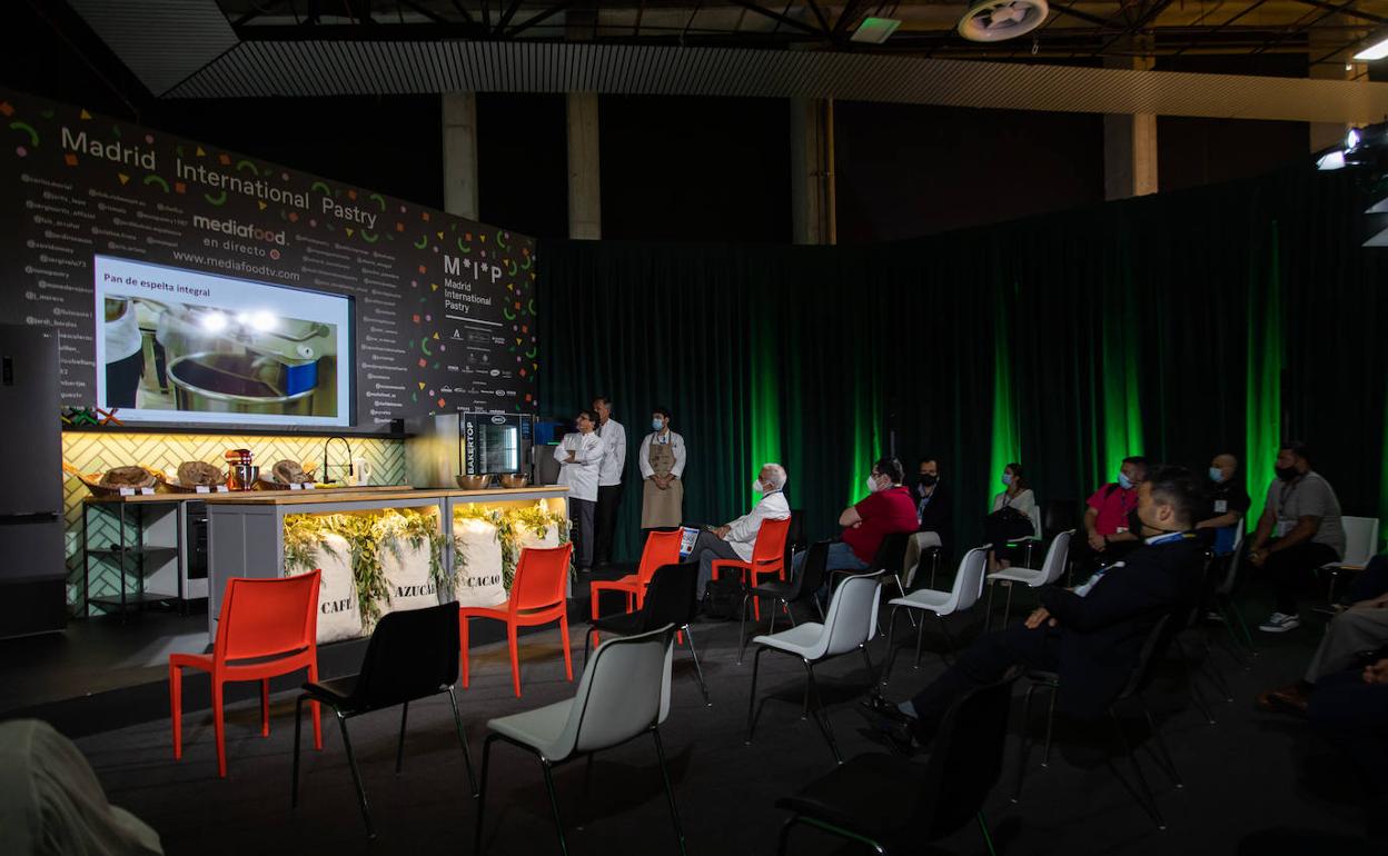Cerca del mediodía los olores ya conquistan el pabellón 14 de Ifema, intensas fragancias, como la de la paella valenciana que prepara una alegre chef que aprendió su oficio «haciendo», amenizan los reencuentros entre los profesionales del sector de la restauración. «Quieren probar el arroz», dice cuando va tras bastidores con su paila, sin dejar que nadie hinque el tenedor. Los comensales van de una esquina a la otra buscando el mejor madridaje. Un mordisco por aquí, un trago por allá y componen sus menús guiados tanto por el instinto como por la suerte.