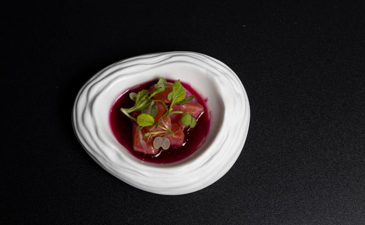 Además, ha simulado un clásico carpione (parecido a un escabeche) con trucha frita, marinada y reservada, y chalota; ha sumergido las carrilleras en un garum elaborado a partir de pescado del lago antes de acompañarlas de una creme fraiche de nata de vacas de las montañas cercanas; ha elaborado un ceviche marino; creado una mayonesa infusionada con las espinas del pescado a la barbacoa con hierbas de la zona –«como una mayonesa de pescado ahumado pero sin pescado»-, y ha finalizado con un plato a partir del pan sobrante de cada servicio.