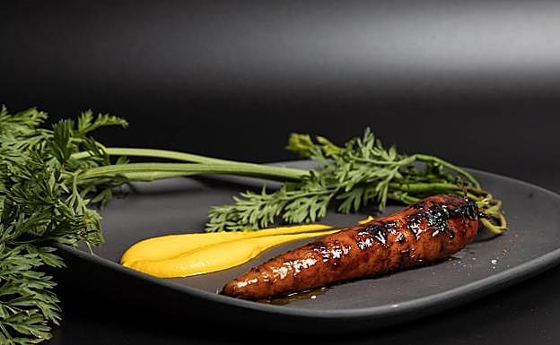 La esencia y sencillez de cada uno de los platos que se ofrecen en este restaurante quedó demostrada en la ponencia de Madrid Fusión: Zanahoria escaldada y braseada con puré de zanahoria, pil pil de naranja y kuzu; Cebolla asada en arcilla, sal, avellanas tostadas, ajo negro, brotes y aceite y, por último, puerro -del que se aprovecha todo, hojas, raíces, tallos…- con una demiglacé cuyo proceso se explica a través de un video.