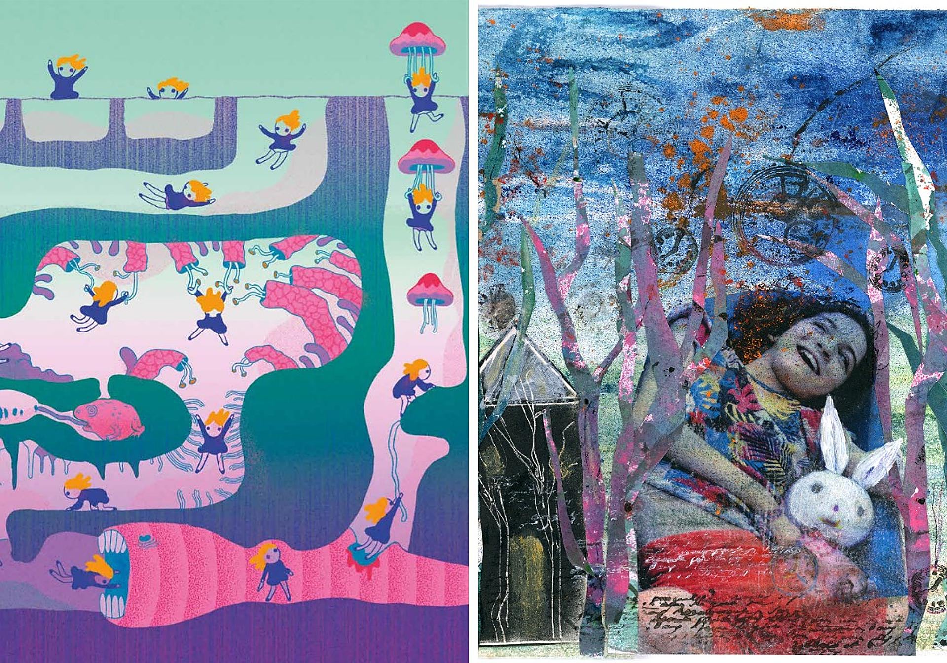 Artistas, familiares y colaboradores tienen en común que «conocemos y queremos a Marina y Virtu y aspiramos a darle mucha visbilidad para que se vendan muchos calendarios y ayudar a Marina, que es lo único que importa. No hay más pretensión», apunta Ana Galvañ, autora de una de las ilustraciones (dibujo a lápiz y técnica digital) que aborda la escena de la caída de Alicia por la madriguera del Conejo Blanco, pero a la que ha querido dar «un punto de vista más positivo, más naïf y más cándido que la Alicia de Carroll, que es un poco más oscura». Y reconoce que también para ellos este acto de solidaridad se convierte cada año en «una sorpresa porque no sabemos lo que hace el otro, cada uno con una visión diferente y técnicas diferentes en sus obras», considera Galvañ, que confiesa que no falta nunca a la cita y que siempre intenta «hacer el homenaje a Marina lo más bonito posible» en una obra en evolución que queda reflejada en cada calendario.