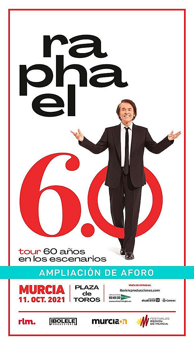 Raphael regresa a los escenarios por todo lo alto para celebrar 60 años de estelar trayectoria. En 2021, el artista recorrerá España para festejar junto a su público aquellas canciones que ya forman parte de la memoria colectiva de nuestro país; así como los nuevos temas de 'Raphael 6.0': su último proyecto y con el que se posicionó, una vez más, en lo más alto de la lista de ventas.