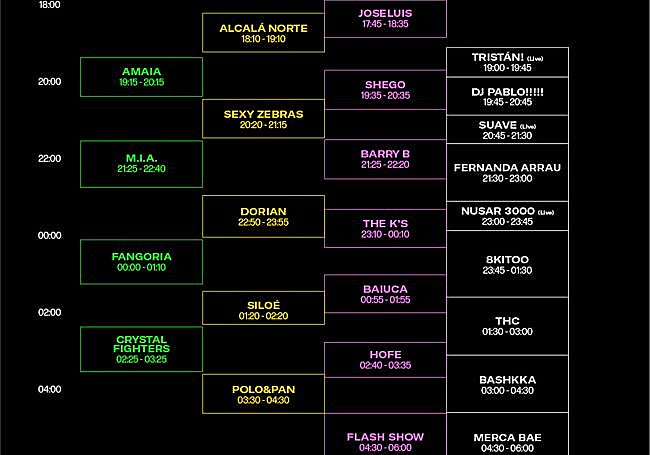 Franz Ferdinand, Mikel Izal, Carolina Durante, Zahara y Niña Polaca serán los grandes alicientes del viernes, mientras que el sábado estará liderado por M.I.A., Fangoria, Sexy Zebras y Crystal Fighters