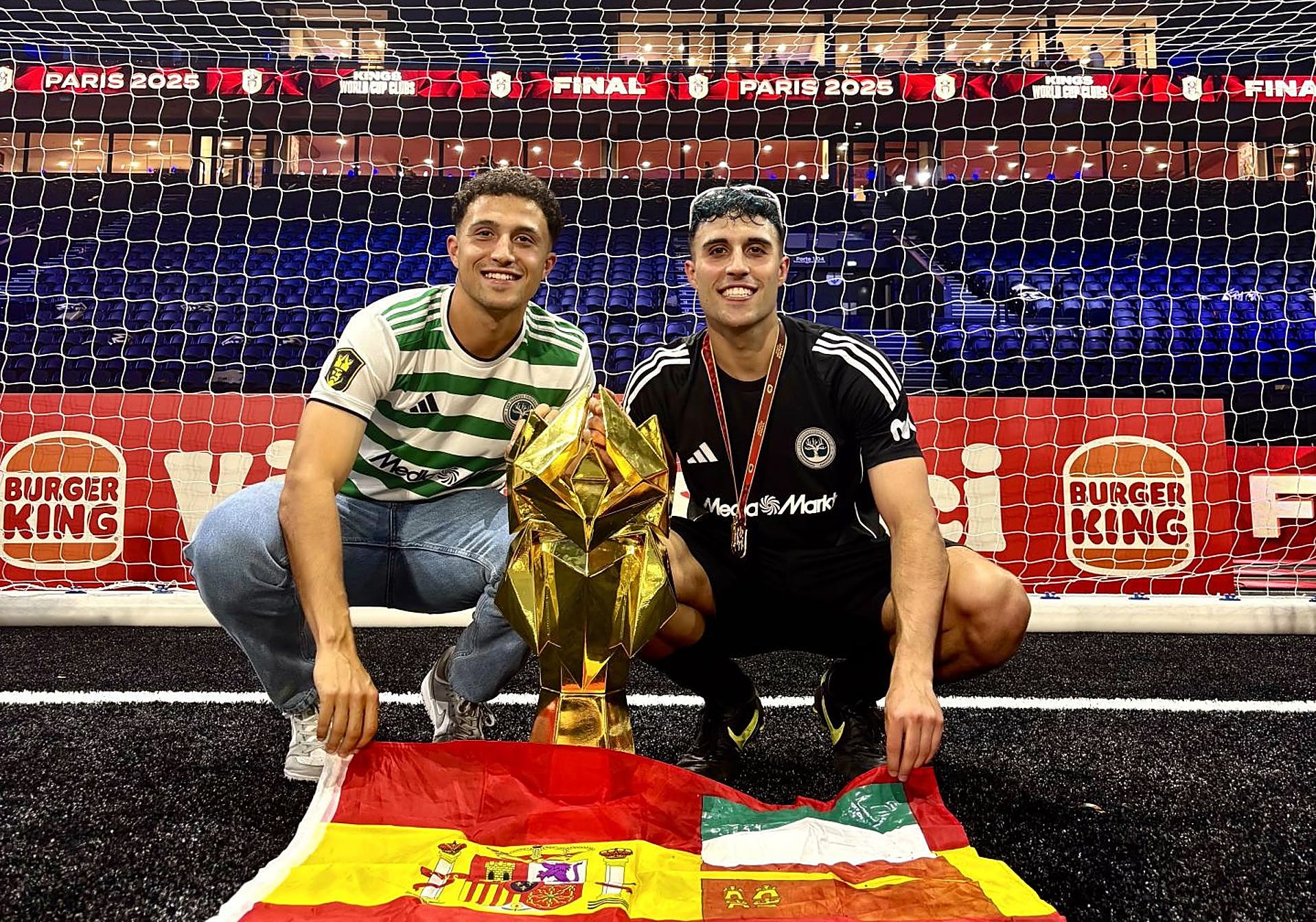 Aquella noche de junio, Diego celebró su título mundial de la Kings League envuelto en una bandera atípica: «Le pedí a mi hermano que comprara una de la Región, pero en París no había, así que compró una de España y le dibujó la de Murcia y la de Cehegín», una imagen que se coló en directo ante 100 millones de espectadores, una escena imposible de imaginar hace un año, cuando ni siquiera lo soñaban desde el sofá de casa. Entre dos aguas, de los campos municipales a los 'streamings' globales, con su tierra por bandera.