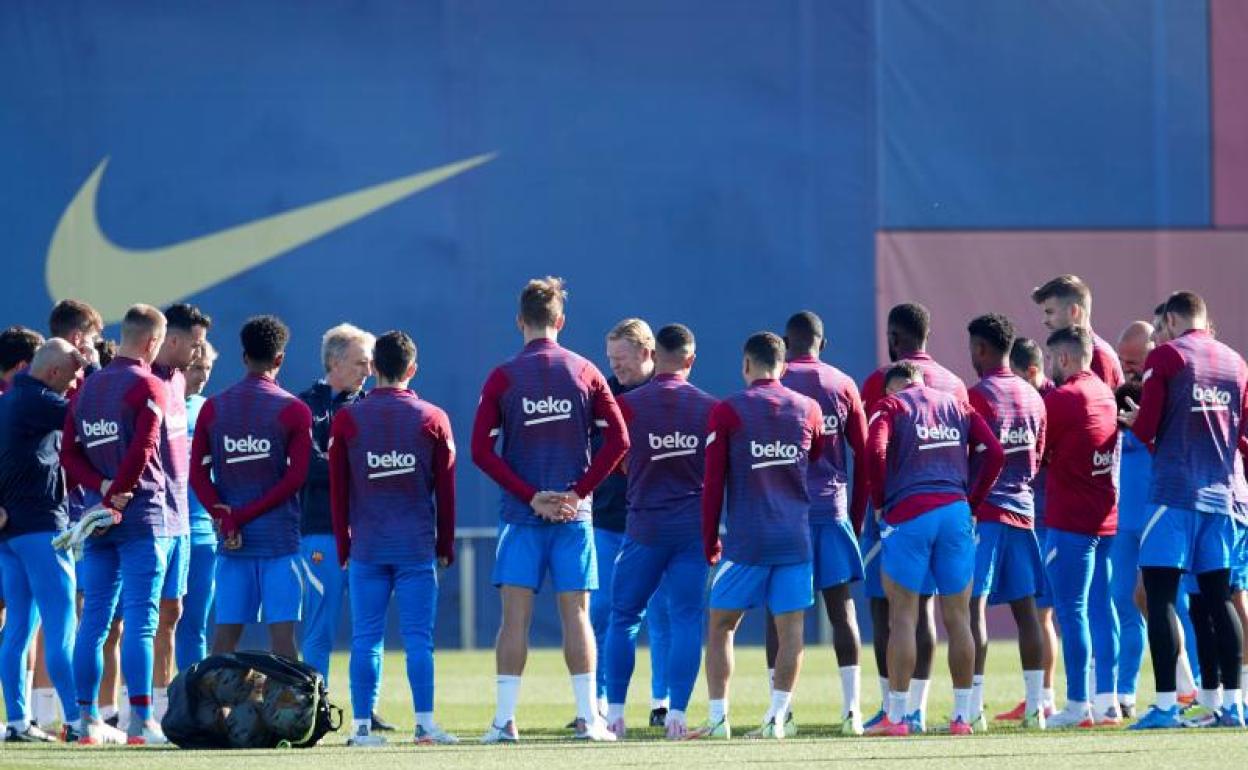 Ronald Koeman se reúne con sus jugadores en el entrenamiento del Barça. Foto: efe | Vídeo: Atlas