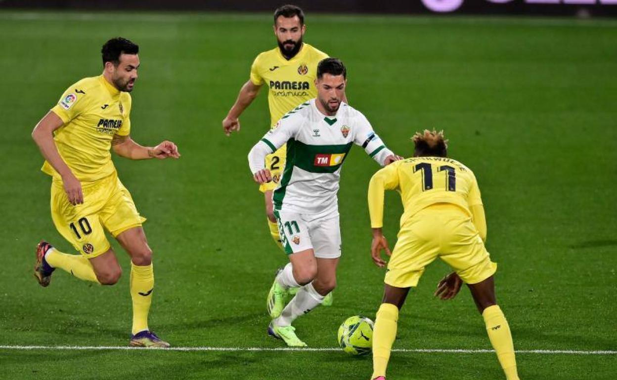 Aunque al Elche le costaba llegar, se jugaba más a lo que quería el conjunto ilicitano que a lo que pretendía el Villarreal, que se encontraba con muchas dificultades para encontrar opciones de peligro.