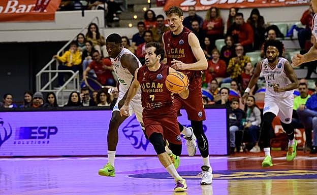El rebote ofensivo fue una de las grandes claves del UCAM en la primera parte, en la que consolidó su triunfo en un excelso partido de baloncesto