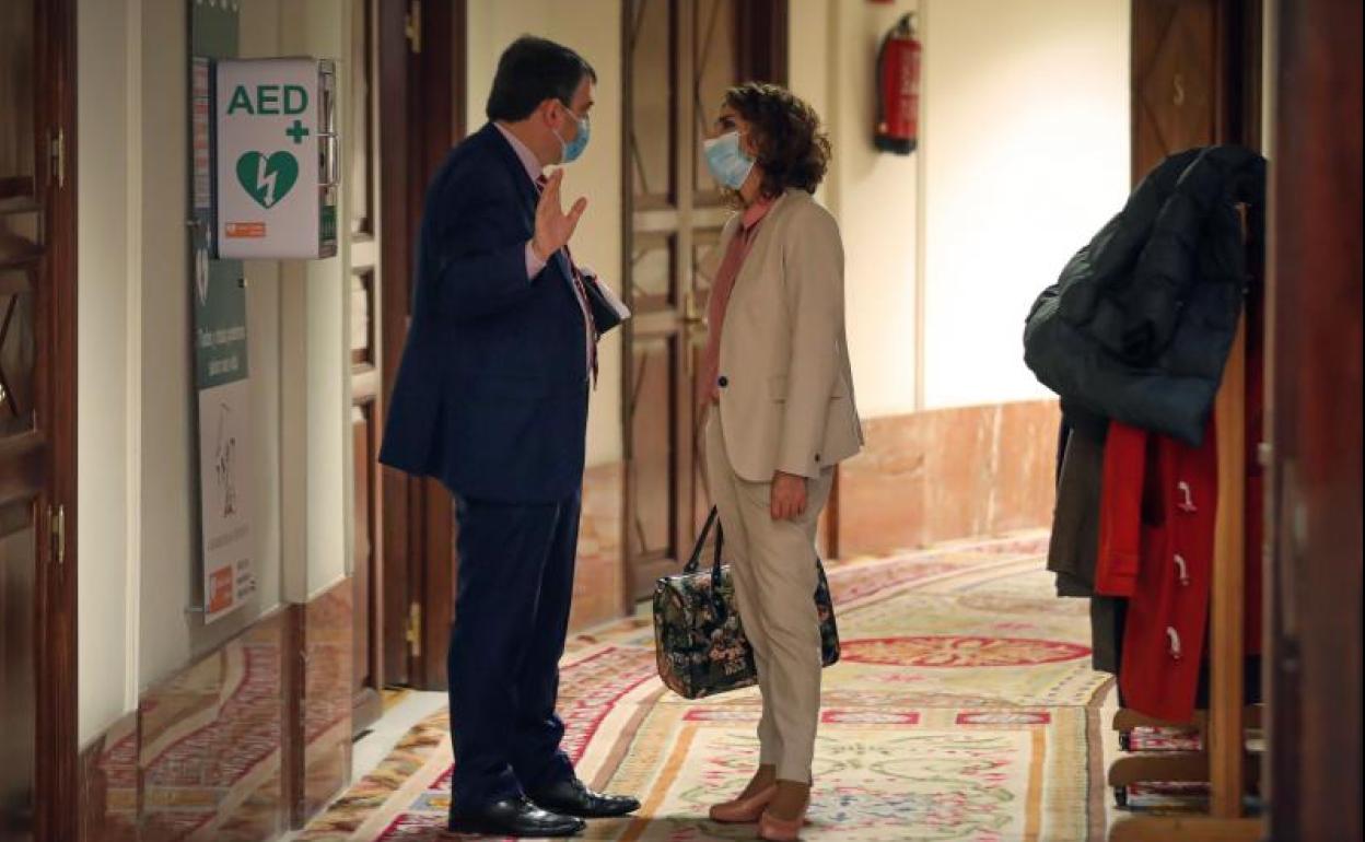 Aitor Esteban, portavoz del PNV en el Congreso, y la ministra de Hacienda, María Jesús Montero foto: EFE | Vídeo: ep