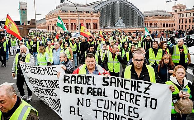 Los camioneros críticos se manifestaron ayer por las calles de Madrid, unas 3.000 personas según cálculos de la Policía, y se reunieron posteriormente en el aparcamiento del estadio Metropolitano -donde muchos habían dejado aparcados sus vehículos- para valorar la primera jornada después de que ningún miembro del Ministerio de Transporte se reuniera con ellos ayer.