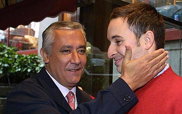Santiago Abascal (Bilbao, 1976) se crió junto a su padre Santiago Abascal Escurza, que regentaba un negocio textil en Amurrio (Alava) y era dirigente local del PP alavés. Su abuelo, Manuel Abascal Pardo, fue quién inició la saga política familiar como alcalde de Amurrio durante el Franquismo. El actual dirigente de Vox siempre recuerda que el hecho de que su familia estuviera amenazada por ETA marcó su vida, por lo que justifica el hecho de salir a la calle con una pistola de la marca Smith & Wesson, «para defender a mis hijos». En la foto, ambos después de que la tienda sufriera un ataque con piedras en 1999.