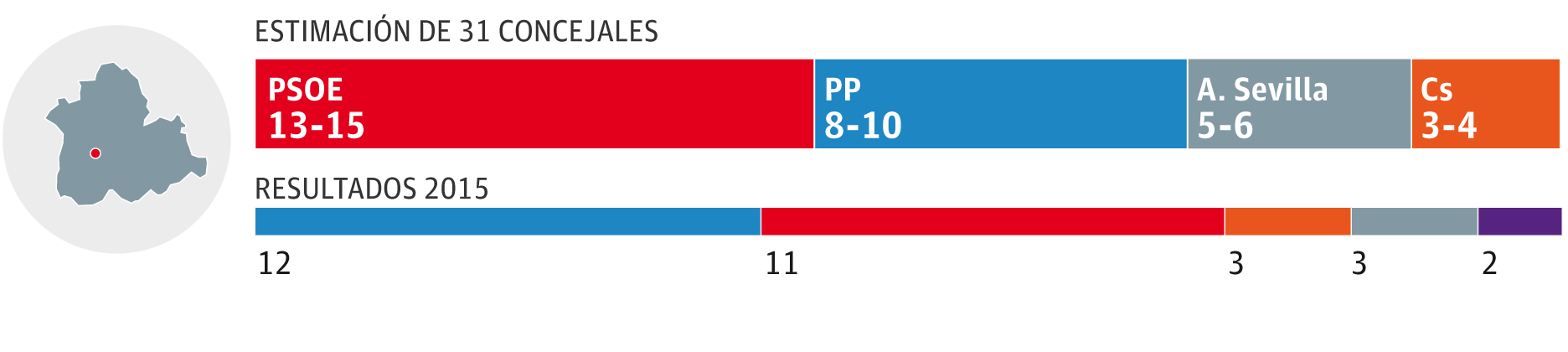 El mayor descalabro electoral lo sufriría el PP que bajaría de 12 concejales a entre 8 y 10. Ciudadanos podría sumar un nuevo representantes al pasar de los 3 actuales a entre 3 y 4.