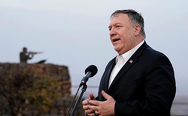 El secretario de Estado de EE UU, Mike Pompeo, acompañado por el ministro de Exteriores israelí, Gabi Ashkenazi, en el monte Bental, en los Altos del Golán. REUTERS