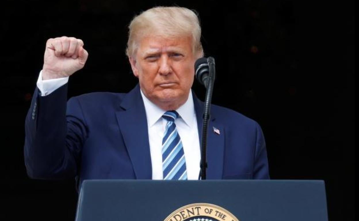Trump, ayer, durante su intervención desde el Jardín Sur de la Casa Blanca. AP