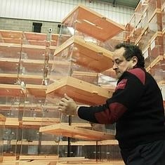 Un hombre carga unas urnas para las próximas elecciones generales.
