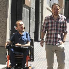 Pablo Echenique y Pablo Iglesias se dirigen esta mañana a la sede del partido.