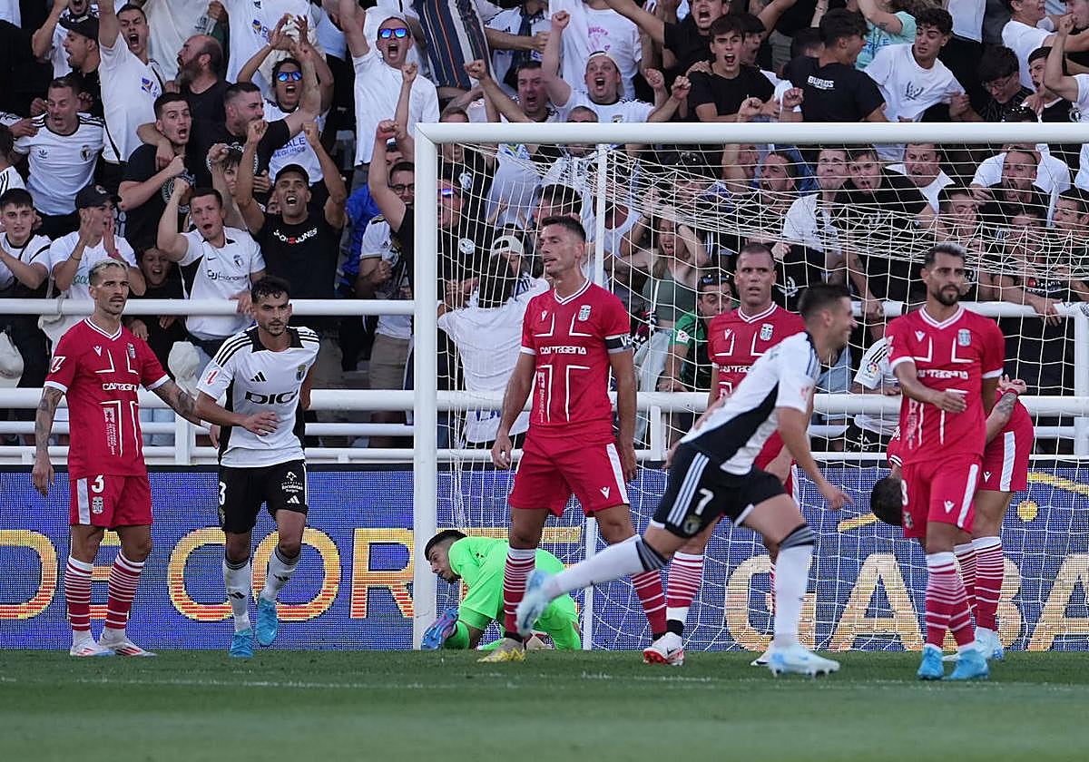 Todo empezó tras un error gravísimo en la salida de balón del meta Pablo Cuñat, capaz de lo mejor y de lo peor como suele sucederle a los porteros tan jóvenes. El cancerbero cedido por el Levante le regaló la pelota a Dani Ojeda cuando quería dársela al lateral Martín Aguirregabiria. Pudo el exterior canario montar un ataque rápido, con la defensa del Cartagena descolocada, y el gol no llegó a la primera, sino a la segunda.