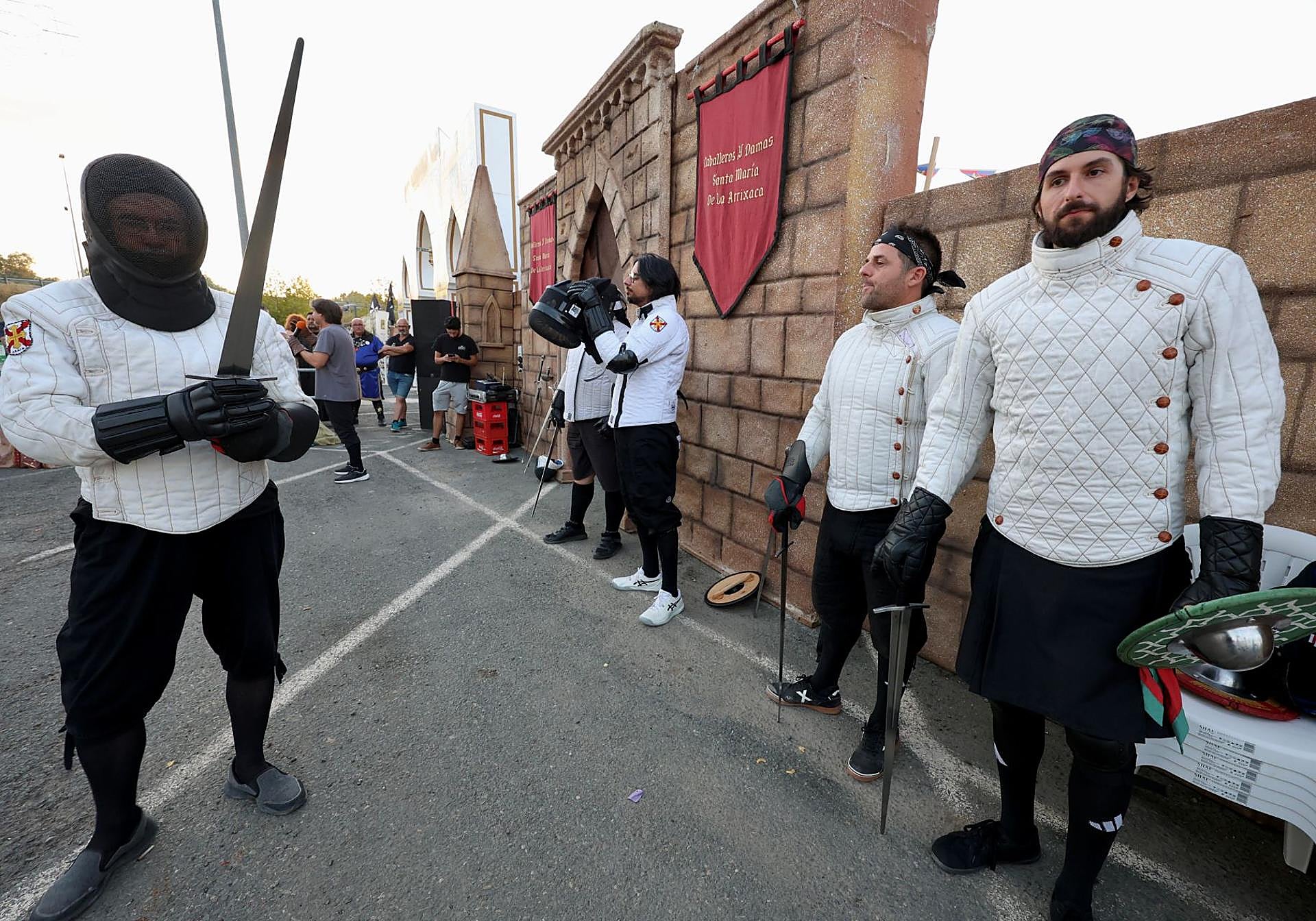 Las espadas templarias brillaron en simbólico duelo al sol para sorprender a propios y extraños en la tarde de ayer. El Campamento Medieval de Moros y Cristianos, en el disuasorio del Malecón, fue el escenario elegido para la exhibición, organizada por la mesnada Santa María de la Arrixaca.