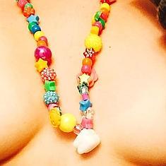 La joven muestra su 'exclusiva' creación con una provocativa foto en la que luce el colgante en topless