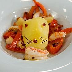 "León come gamba", así bautizó Alberto al plato que llevó a ser el primer expulsado del talent show culinario. El benjamín de la tercera edición de MasterChef acabó llorando desconsoladamente al escuchar los comentarios del jurado antes del veredicto final. Alberto explicaba que los jurados del programa querían ver el león que había en él, y así lo hizo: "quería demostrar que soy un león en la cocina". Inventó un plato de un gazpacho con tomate y fresa con pimiento asado a modo de "melena" y una patata cocida que formaba la cara de un león.