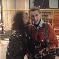 Steven Tyler, de Aerosmith, canta con un músico callejero en Moscú
