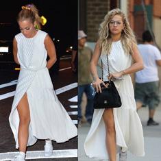 Los rumores sobre un supuesto acercamiento entre ambos han surgido a raíz de una fiesta que la banda británica organizó tras ofrecer un concierto en Nueva York. A esta acudió Rita Ora, engalanada con un elegante vestido blanco de rayas verticales y una raja bastante atrevida en la falda. Un vestido con el que fue vista también a la mañana siguiente, pero luciendo un aspecto mucho más desaliñado y saliendo, nada más y nada menos, del hotel en el que se hospedaba Chris Martin.
