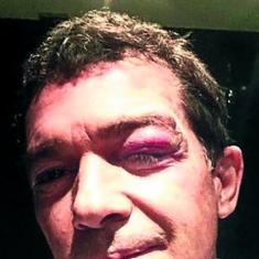 Antonio Banderas ha colgado en las redes sociales una foto en la que se le ve con el rostro hinchado y el ojo amoratado a consecuencia de un golpe que se dio durante el rodaje de su nueva película, 'Stoic'. «El cine de acción es trepidante, emocionante y, a veces, duro y peligroso de rodar... para muestra, mi ojo», escribió el actor malagueño, que también hizo un guiño demostrando que el coscorrón no ha afectado a su sentido del humor: «Deberíais haber visto la cara del otro».