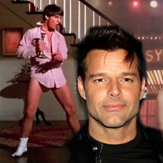 En este caso, Ricky Martin ha imitado una escena muy mítica de Tom Cruise en la película 'Risky Business', donde aparece cantando y bailando en calzoncillos y utiliza como micrófono un candelabro. (Más información en Mujerhoy.com)