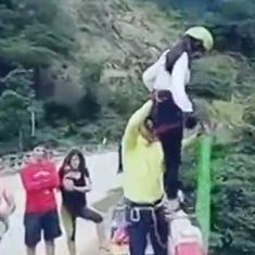La escena fue grabada en Bolivia, en el puente 'La Negra', cerca de Cochabamba. Un grupo de amigos se disponía a disfrutar de una jornada de aventuras y subidón de adrenalina practicando 'puenting'. Como casi siempre ocurre en estos momentos, alguien lleva un móvil o una cámara para grabar y fotografiar la experiencia y que quede constancia de ella.