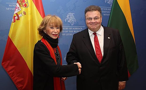 La que fuera vicepresidenta del Gobierno de Zapatero ha reaparecido públicamente en su visita oficial a Letonia