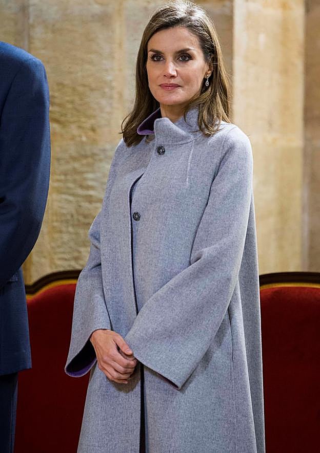 Para la ocasión Doña Letizia escogió un conjunto de dos piezas en gris de Carolina Herrera, con un vestido de lana sin mangas y abrigo a juego. Un conjunto que la Reina ha lucido en alguna que otra ocasión, como apuntan desde la revista Chance, y que hemos podido ver en el IV Congreso Educativo de Enfermedades Raras celebrado en Valencia en abril.