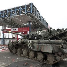 Un tanque dañado en la localidad de Debáltsevo.