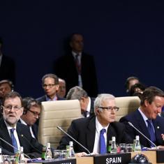 Mariano Rajoy junto al primer ministro David Cameron y Barack Obama.