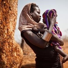Una mujer con su bebé en un campo de refugiados de Sudán del Sur.