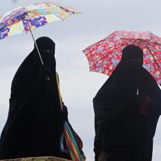 Dos mujeres marroquíes con burka.