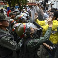 Partidarios de la oposición se enfrentan a la Guardia Nacional venezolana.