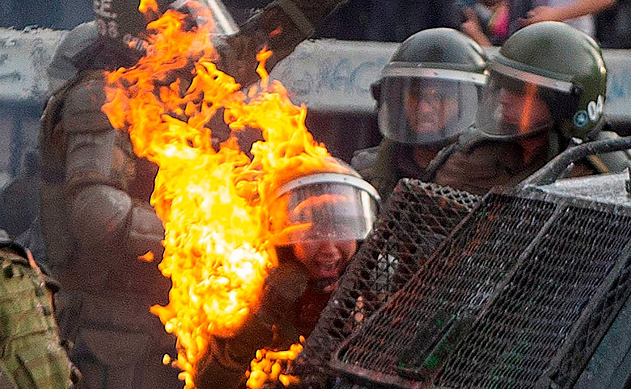 Ataque a un policía en Santiago de Chile. Foto: Afp | Vídeo: EP