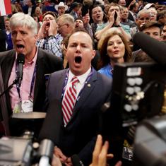 La dirección del partido ha argumentado que no había suficiente apoyo para convocar una votación a viva voz que evidenciaría los partidarios reales de Trump. Entonces, algunos delegados salieron del edificio en protesta.