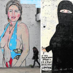 Como respuesta a las críticas, Lushsux transformó el mural cubriendo a la política estadounidense con un 'niqab', el velo usado por algunas mujeres musulmanas, junto al siguiente mensaje: "Si esta mujer musulmana le ofende, usted es un intolerante racista, sexista e islamófobo". El grafitero ha compartido también la imagen en internet aclarando que "ya no es una pared supuestamente ofensiva de Hillary Clinton medio desnuda, ahora es una representación de una bella mujer musulmana. Ninguna persona razonable lo consideraría ofensivo".