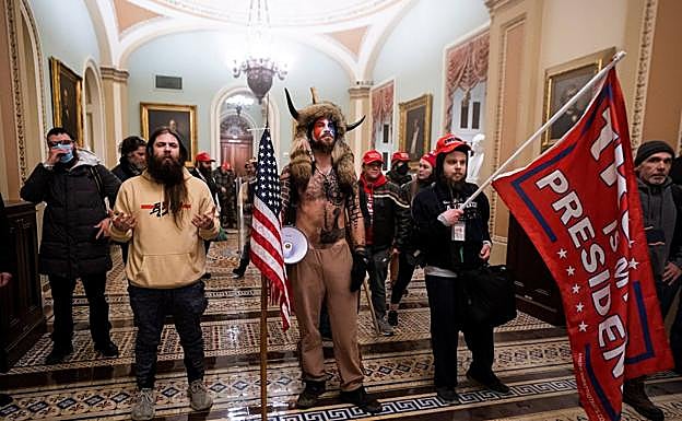Simpatizantes de Trump durante el asalto al Capitolio el 6 de enero de 2021. REUters