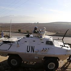 Un tanque de la ONU patrulla la frontera libano-israelí.